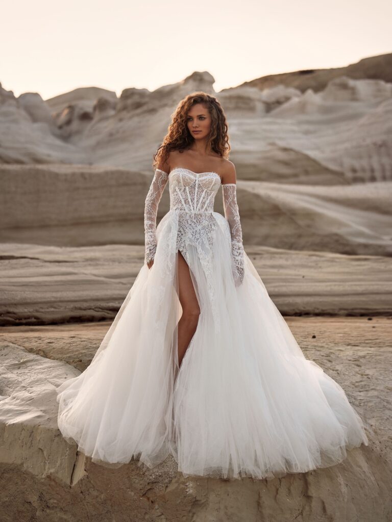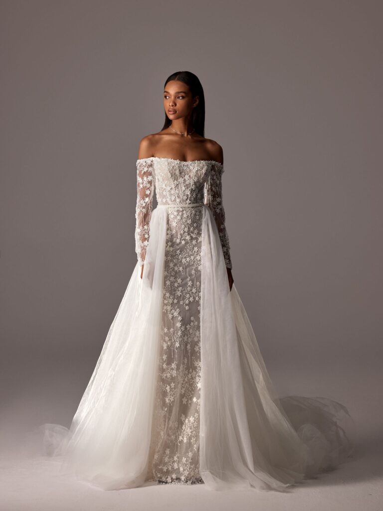 Accessories are also evolving, with luxury fascinators and detailed gloves becoming popular among fashion-forward brides. The POIRIER collection emphasizes unique and impactful items that complement modern bridal looks.